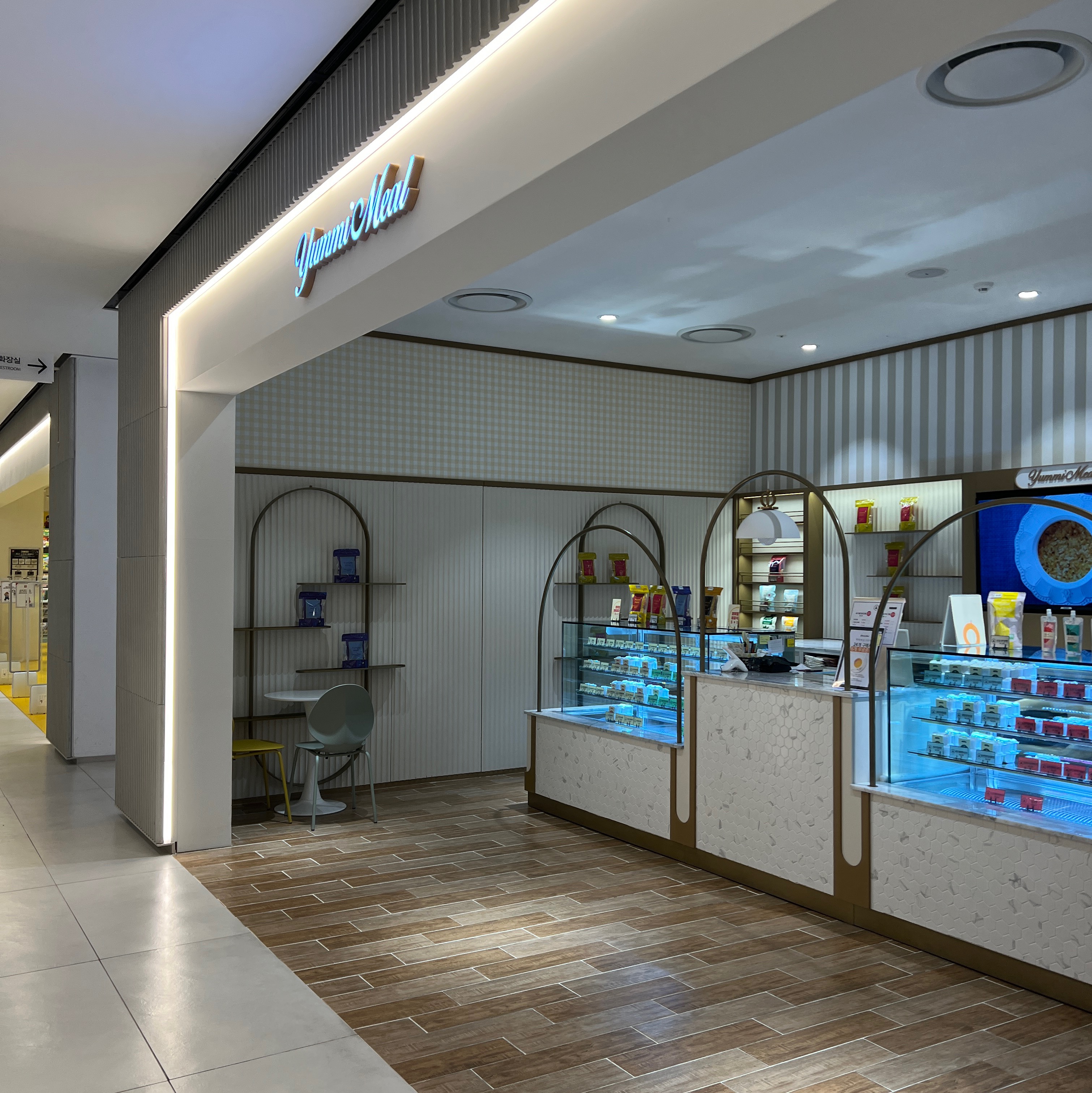 그리고 이유식을 사서 먹이기 가장 좋은 곳이 바로 '유아휴게실'입니다. 그곳은 보통 아이들 옷이나 장난감을 판매하는 층에 같이 있습니다. 갤러리아에서는 6층에 있고요, 유모차 카시트 등등 판매하는 편집샵인 가이아 왼쪽에 있습니다. 이렇게 6층에서 먹이신다면 해당하는 층에도 이유식 가게가 있습니다. 바로 얌이밀이라는 가게입니다. 겉보기엔 카페처럼 예쁘게 되어있지만 이유식과 아기들 간식 등을 판매하는 곳입니다. 여기서 바로 구매해서 먹이는 것이 편하기도 합니다.