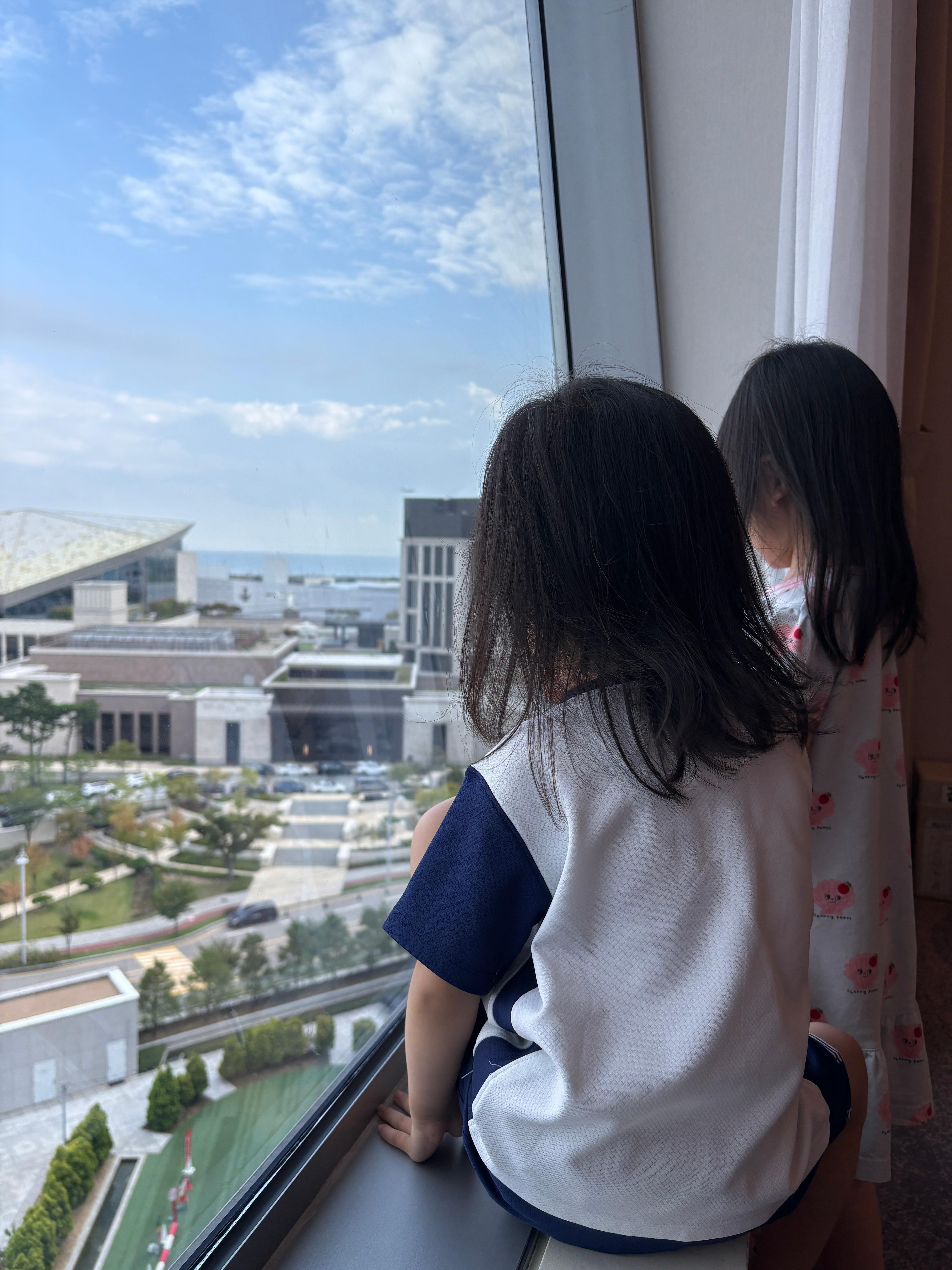 스위트로 예약해서 3116호로 배정받았는데 뷰가 진짜 끝내주더라고요. 지금도 그 번호를 기억하고 3116에 다시 가고싶다 말하는 아이들입니다. 석촌호수뷰를 놓고 보면 어쩌면 저는 시그니엘보다도 좋다고 생각했습니다. 클럽 라운지도 입장 가능했던 객실로 잡아서 애들 놓고 한 명씩 다녀오니 그 자유를 만끽했던 순간을 잊을 수가 없네요.