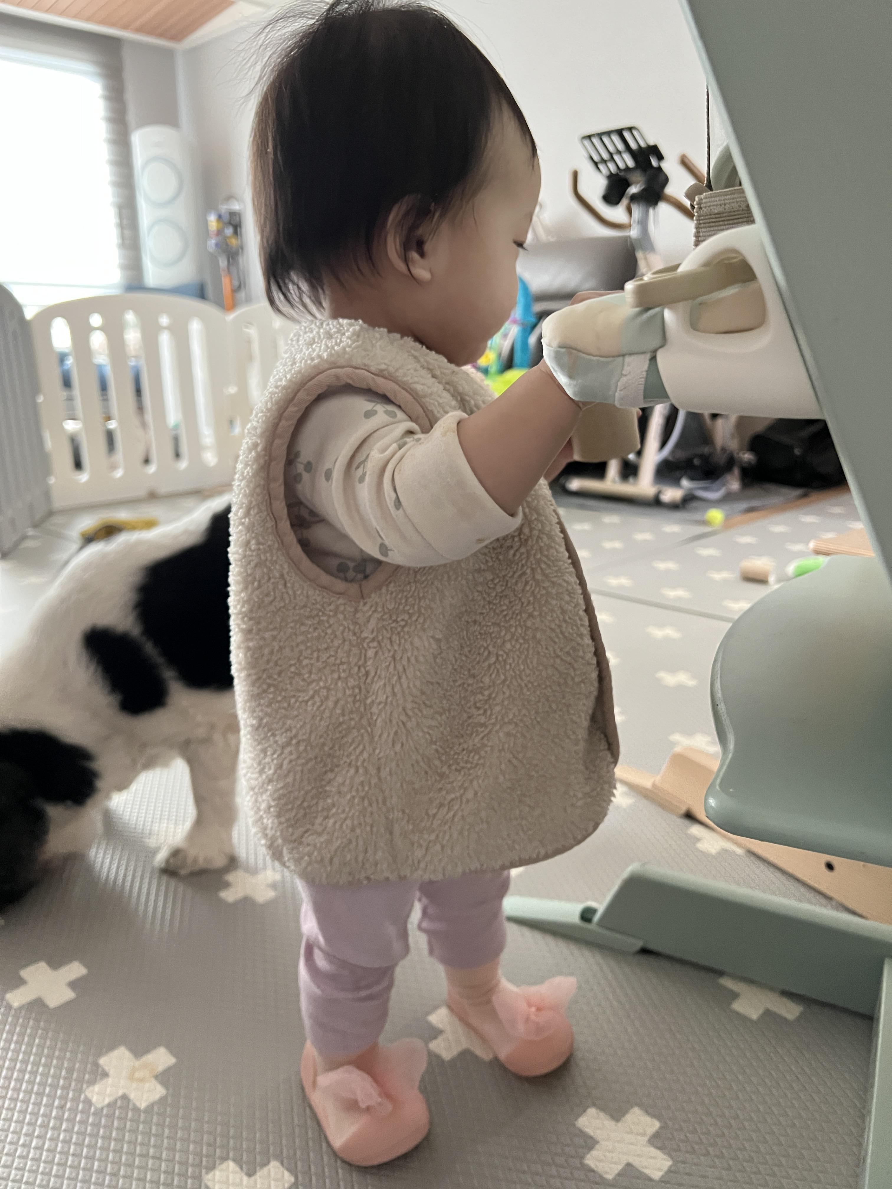 걸을 수 있는 아기들은 신발을 신고 갈텐데요. 저희는 아직은 걷지 못해 유모차로 이동중입니다. 그래서 신발은 신지 않지만 곧 걸을 날을 대비하여 선물받은 ‘아띠빠스’ 걸음마 신발을 신고 실내에서 열심히 걸음마 연습중입니다.