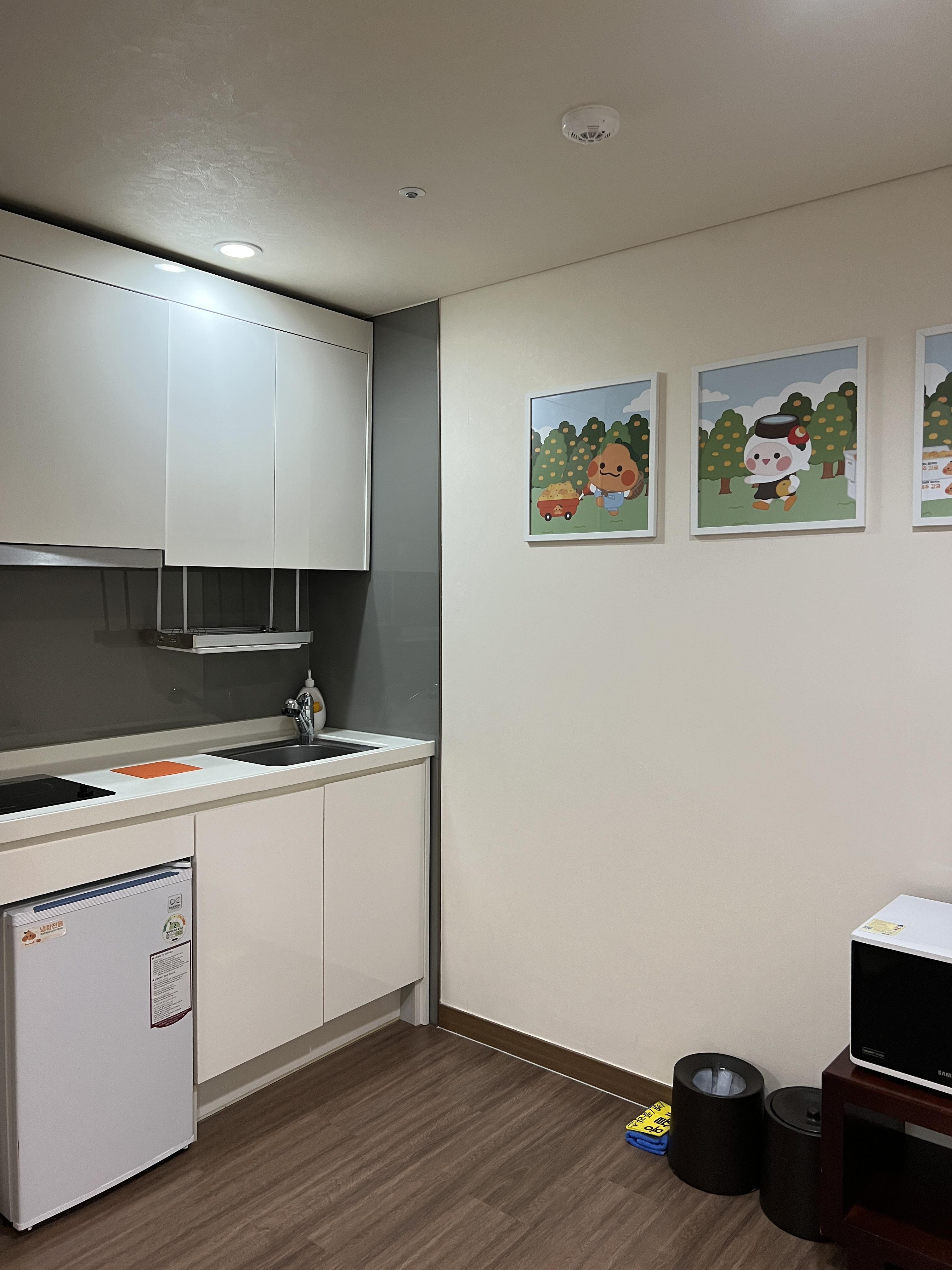 그리고 이런 리조트의 장점은 주방이 구비되어 있어 냉장고, 전자렌지, 개수대 사용을 할 수 있다는 점이다. 아직 분유를 못끊은 시기라서 젖병도 씻고 밥도 데우고 유용하게 사용했다.