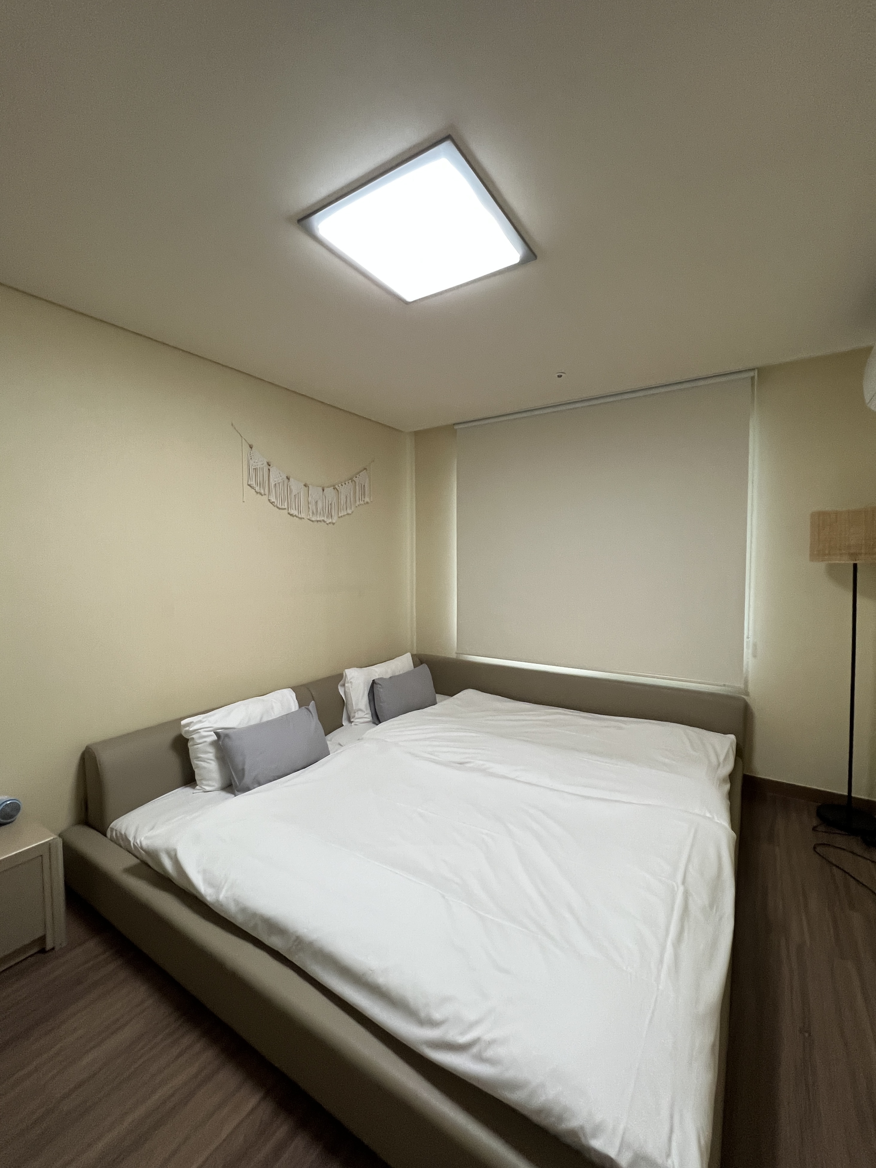 저상형 침대가 있다는 것이 큰 장점이다. 아무래도 바닥보다는 편하긴 한데, 또 낮긴 하더라도 떨어질까 염려가 되기는 하다. 그래도 바닥보다는 내 허리를 더 지킬 수 있어서 좋았다. 물론 잠은 거의 못잤다는 슬픈 이야기지만. 아기들이 낯설은지 중간에 계속 깼다.