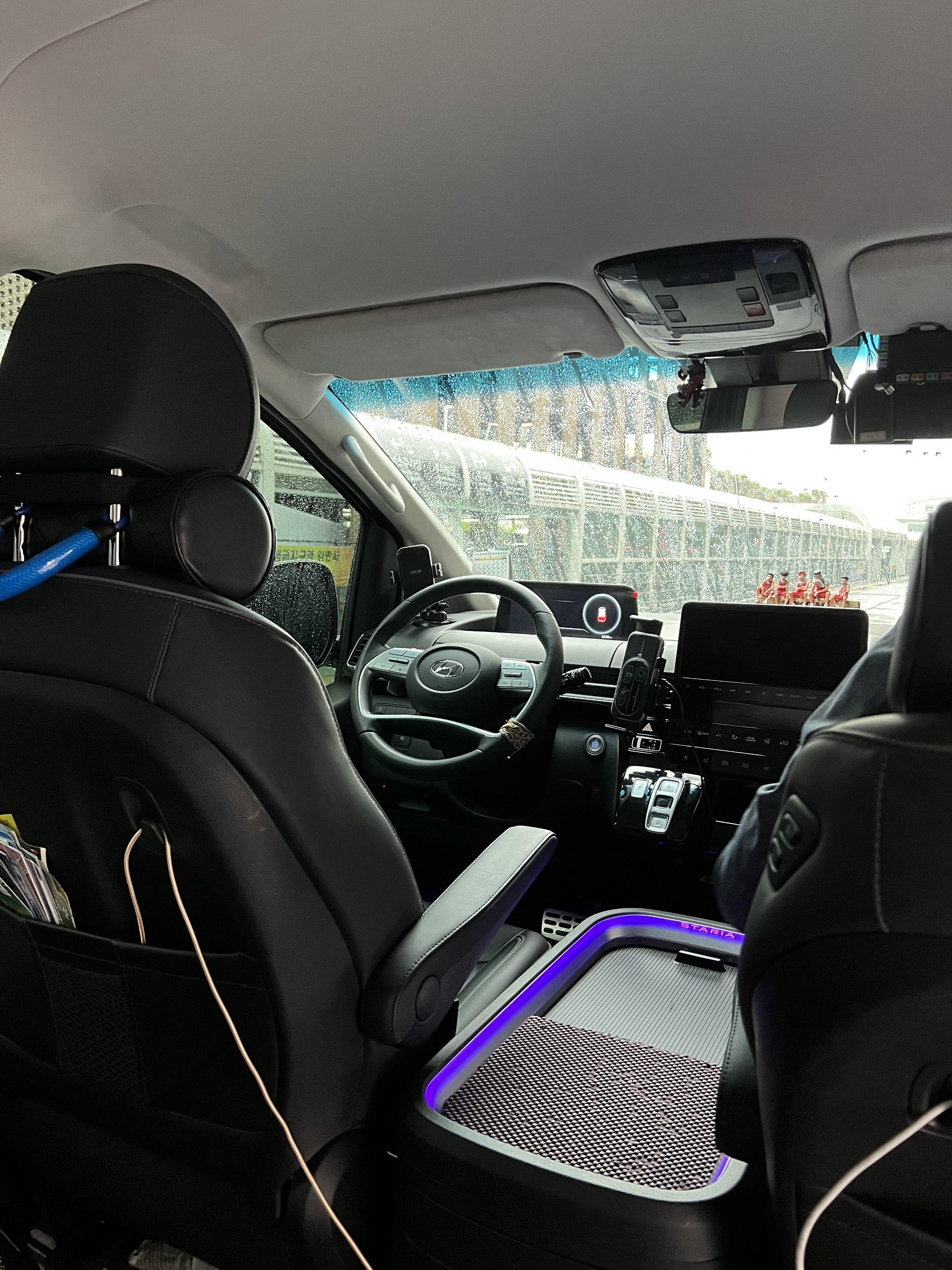 그렇게 힘들게 제주 공항에 도착해서, 짐을 찾고 나가서 바로 예약해둔 밴 택시를 탔다. 스타리아 신차! 처음 이용해 보았는데 너무 좋았다. 항상 제주 여행은 렌터카로 바로 이어지기 때문에 도착해서도 시간이 소요되곤 했었는데 이렇게 편리하다니! 비가 와서 더 짜릿했던 것 같다. 비오는데 렌터카 업체로 이동하고, 짐 올리고 내리고 할 생각하니. 너무 편안한 이동이었다. 렌트를 아예 안한 것은 아니고 남편이 학회 일정으로 하루 미리 들어가 있어서 차를 이미 찾아서 가서 우리는 어쩔 수 없이 택시를 탔다.