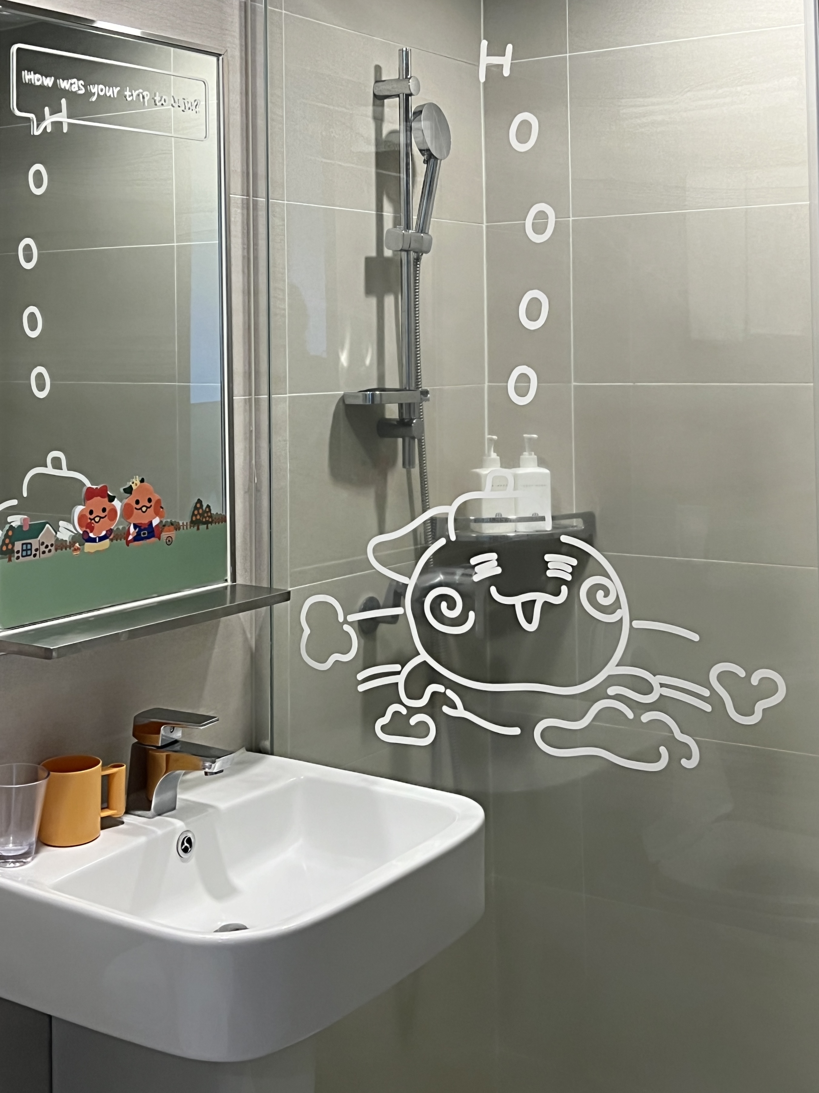화장실은 딱히 키즈룸이라고 보기엔 어려운 듯 하다. 스티커만 예쁘게 붙어있고, 아기 욕조 같은것은 없음. 샤워기도 수압이 조금 낮은편이다.