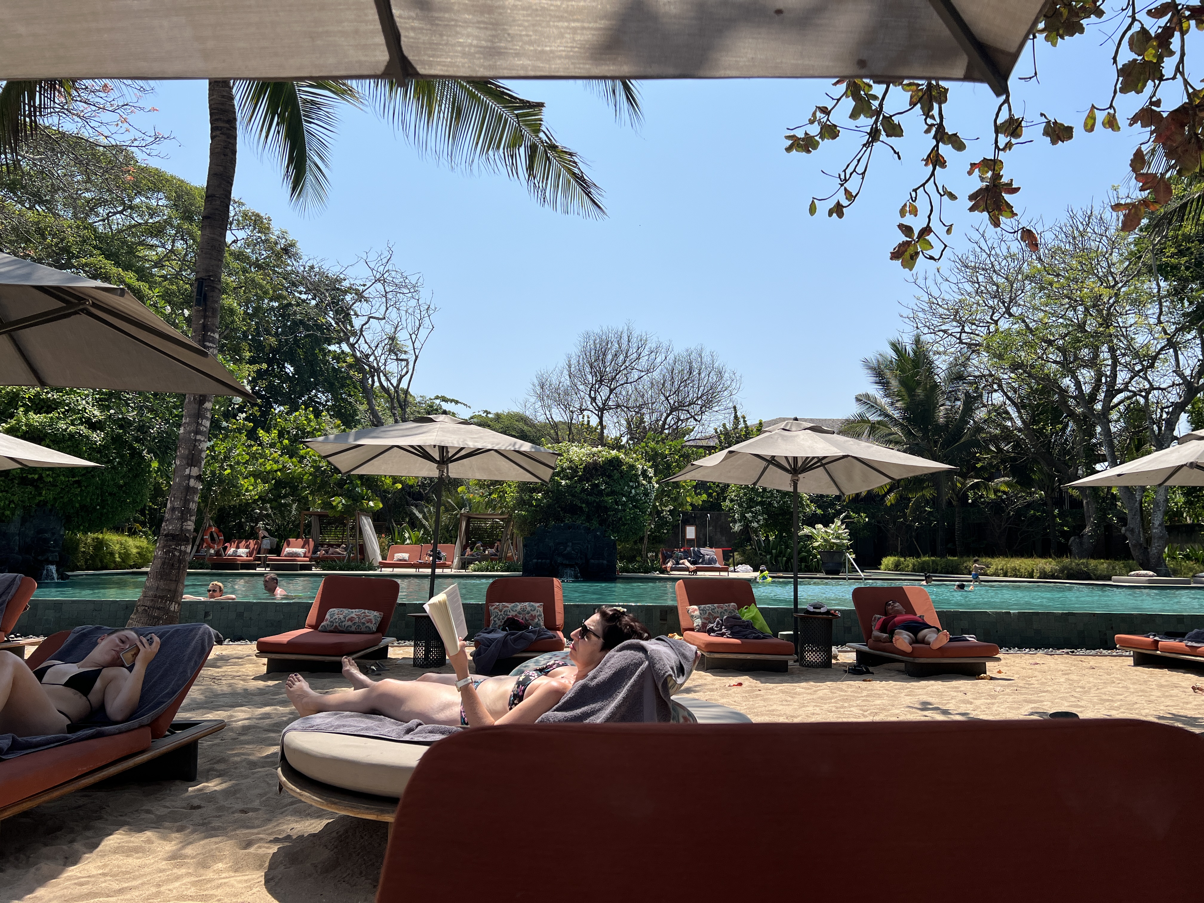 물론 바로 옆 피셔맨즈 클럽에서 음식과 음료를 주문할 수도 있지요. 그렇지만 저희는 한 번도 안시켜먹었어요. 사람들은 대부분 해피아워에 음료수 할인할 때 많이 오는 것 같았어요. 선베드에 누워 바닷가에 파도치는 것만 봐도 정말 힐링이에요. 엄청 더워도 바닷가는 시원해요! 이래서 발리 발리 하나봐요~ 합리적인 가격에 호화로운 리조트. 저희는 1박에 50만원 정도 냈지만, 이건 발리에서 비싼편에 속해요. 더 싸게도 즐길 수 있습니다. 벌써 다녀온지 한달이 넘으니 갑자기 그리워지네요. 언젠간 또 갈 날이 오겠죠.