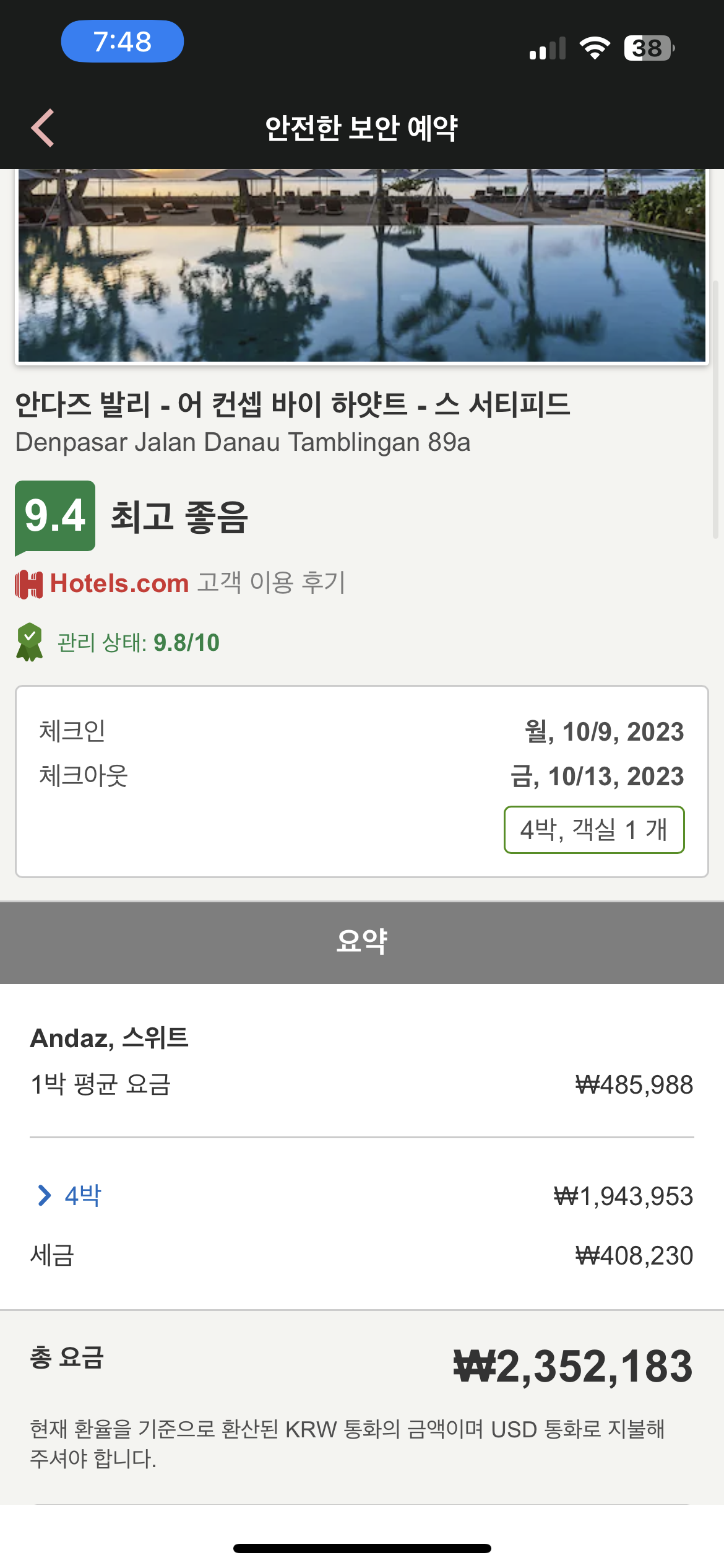 동일한 조건으로 호텔스닷컴에서보니 조금 더 비쌉니다. 공식 홈페이지에서 하길 잘했다는 생각이 듭니다!