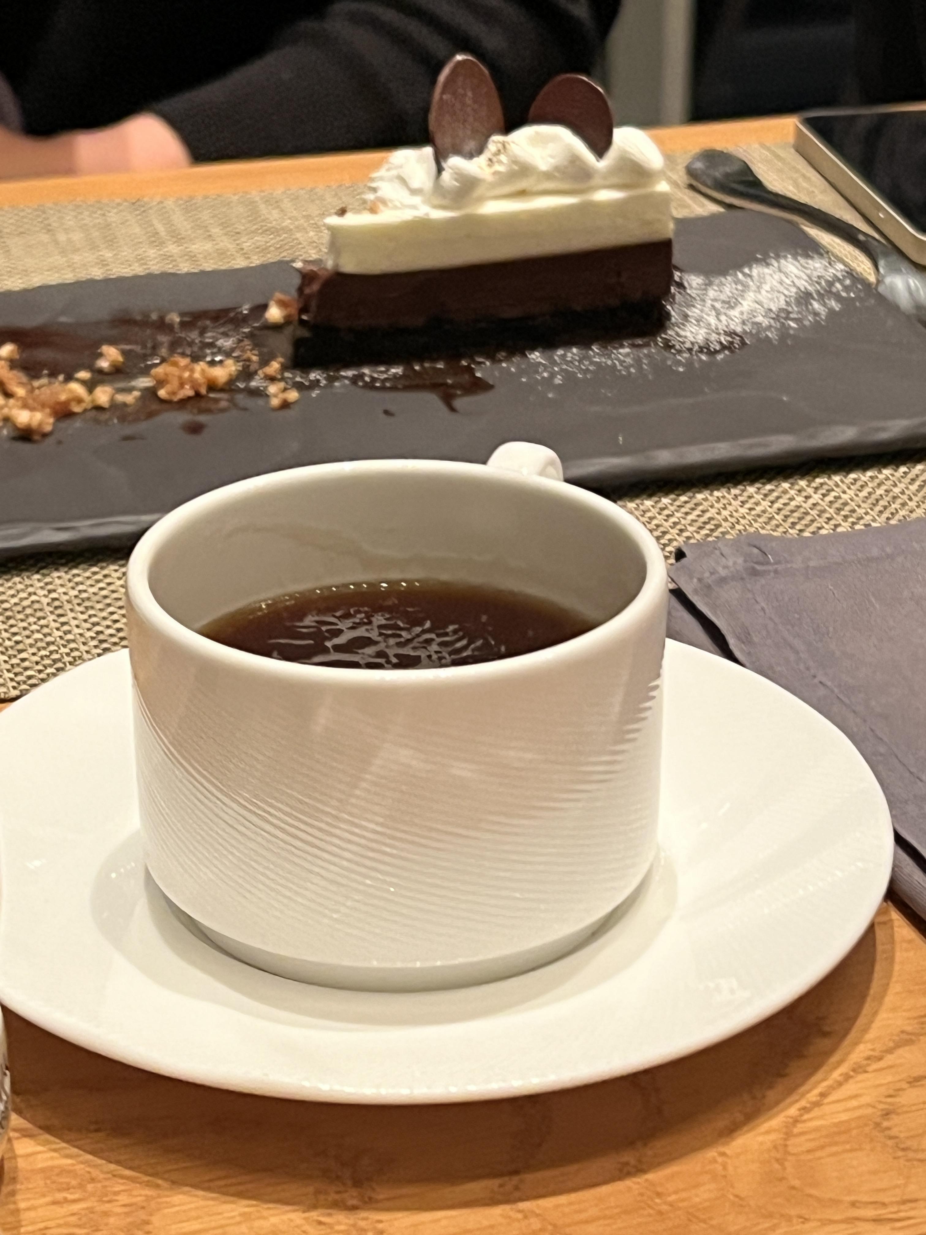 마지막 디저트는 커피 아니면 차, 아니면 오렌지주스 중에 선택할 수 있습니다. 아마도 차는 페퍼민트와 캐모마일 두 가지였던 것 같습니다.