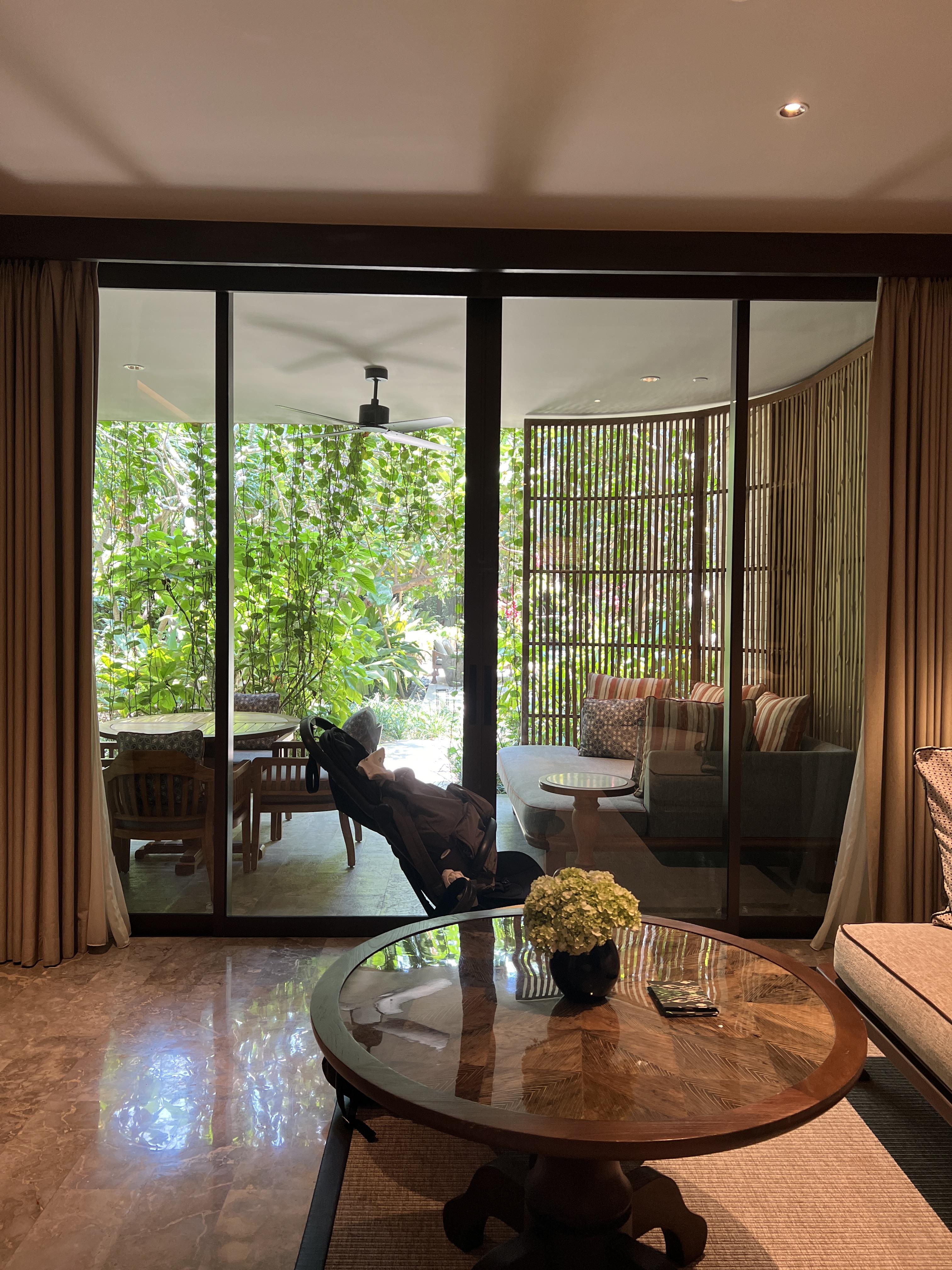 이번 발리 여행의 전부였다고 할 수 있을 정도로, 20개월 아기와 함께 하니 리조트 안에서 시간을 많이 보냈습니다. 5박 6일 을 다녀왔는데, 그 중에 4박을 묵었고, 마지막 밤은 새벽 1시 비행기라 꽉 채우지 못하고 9시에 체크아웃 했습니다. 저희가 묵은 룸타입은 스위트 디럭스룸이고, 스위트룸에서 조금 넓은 스타일의 방입니다. 이 방을 선택한 가장 큰 이유는 침실과 거실이 분리되어있기 때문입니다.