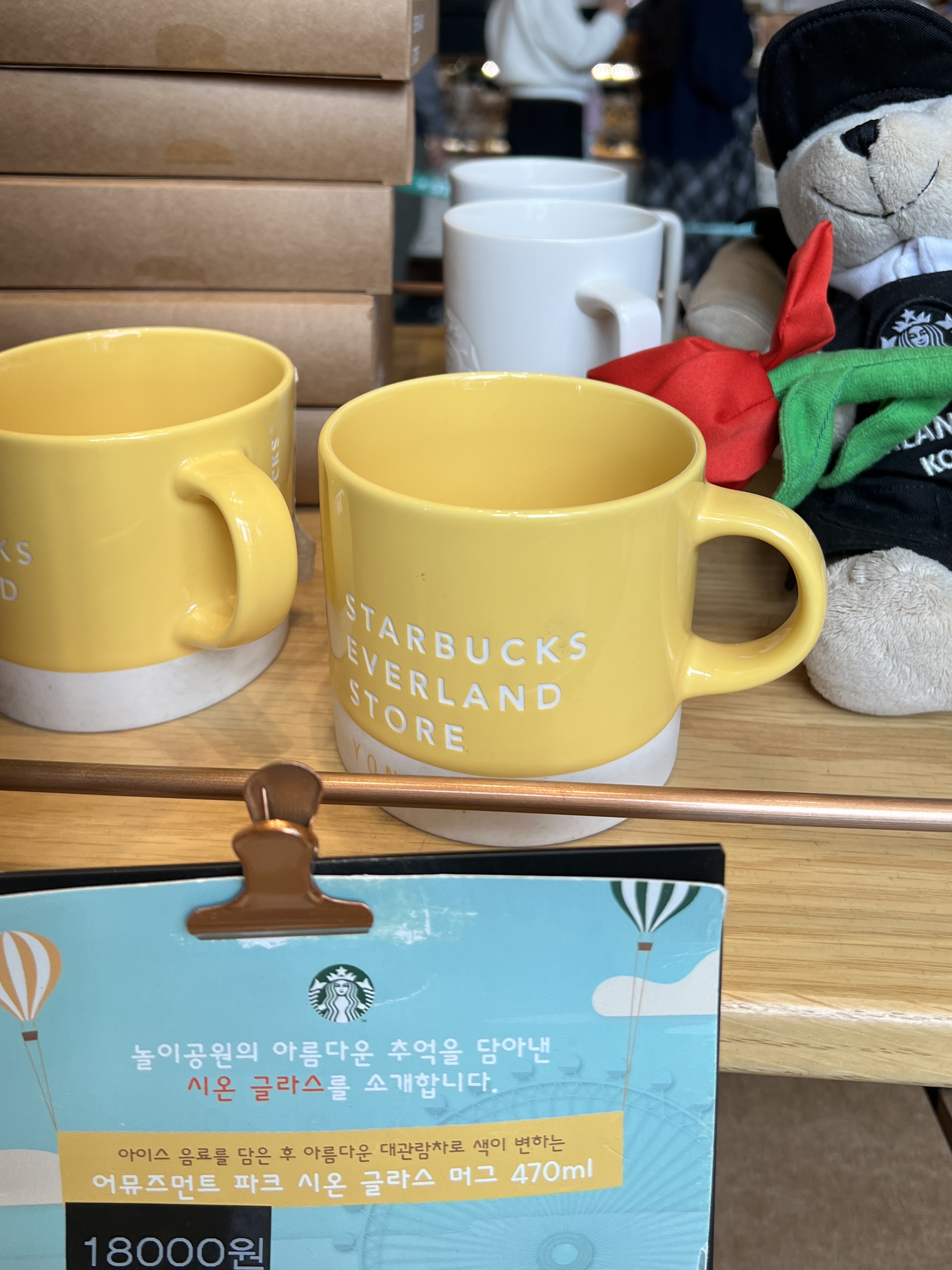 에버랜드 한정판 굿즈도 있지만 구매는 안했습니다. 노오란 컵이 예쁘긴 했습니다.