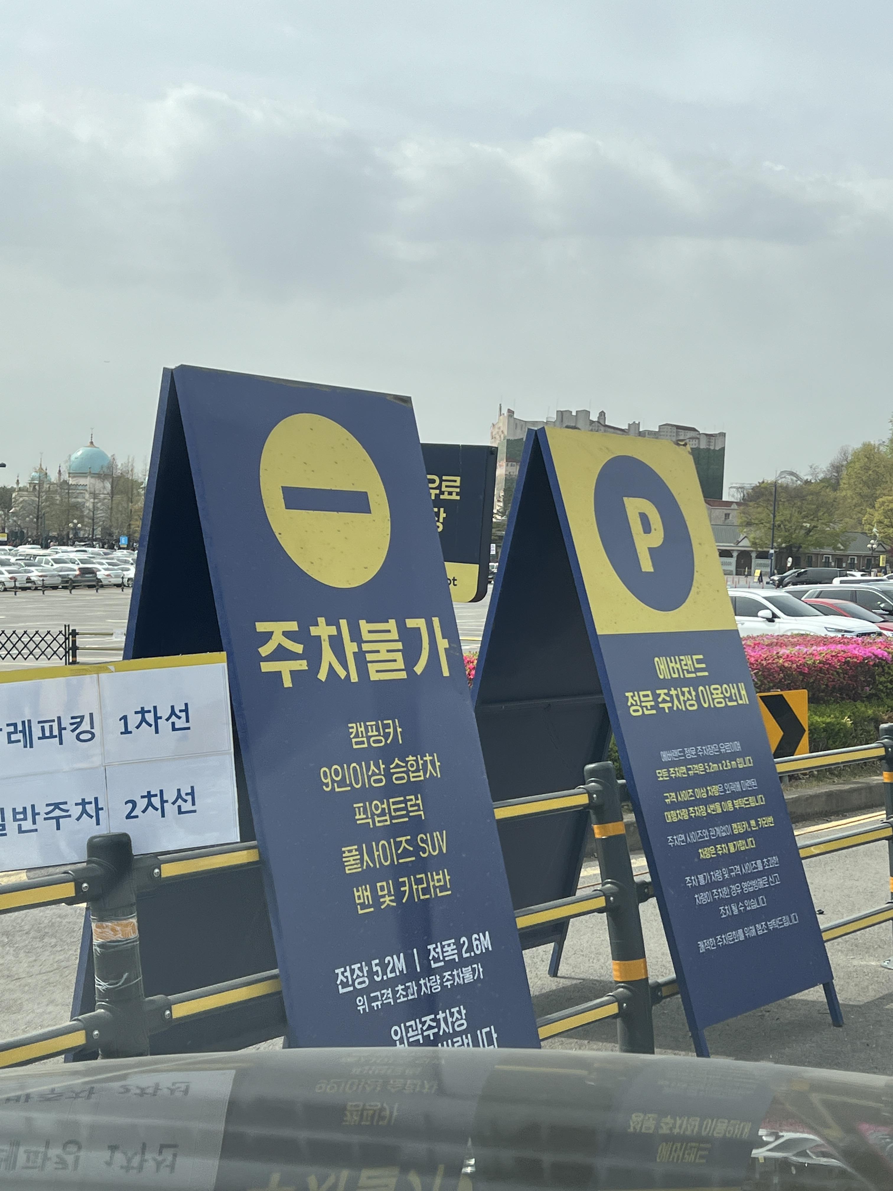 아기와는 처음 가보는 에버랜드! 성인들끼리랑 갈 때와는 완전 달랐습니다. 어느덧 마지막 갔던게 6-7년 전이었습니다. 그 사이 에버랜드가 많이 바뀌었더라고요. 일단 주차장이 일부 유료화 되었습니다. 정문과 가까운 쪽에는 유료주차장이 만들어지고, 심지어는 발렛까지도 이용할 수 있습니다. 유료주차장은 하루 최대 가격 만오천원이라고 합니다. 발렛 주차는 25,000원입니다. 이번에는 아기와 가기 때문에 무조건 발렛을 신청하기로 했습니다. 처음 이용해보았는데 완전 신세계네요.
