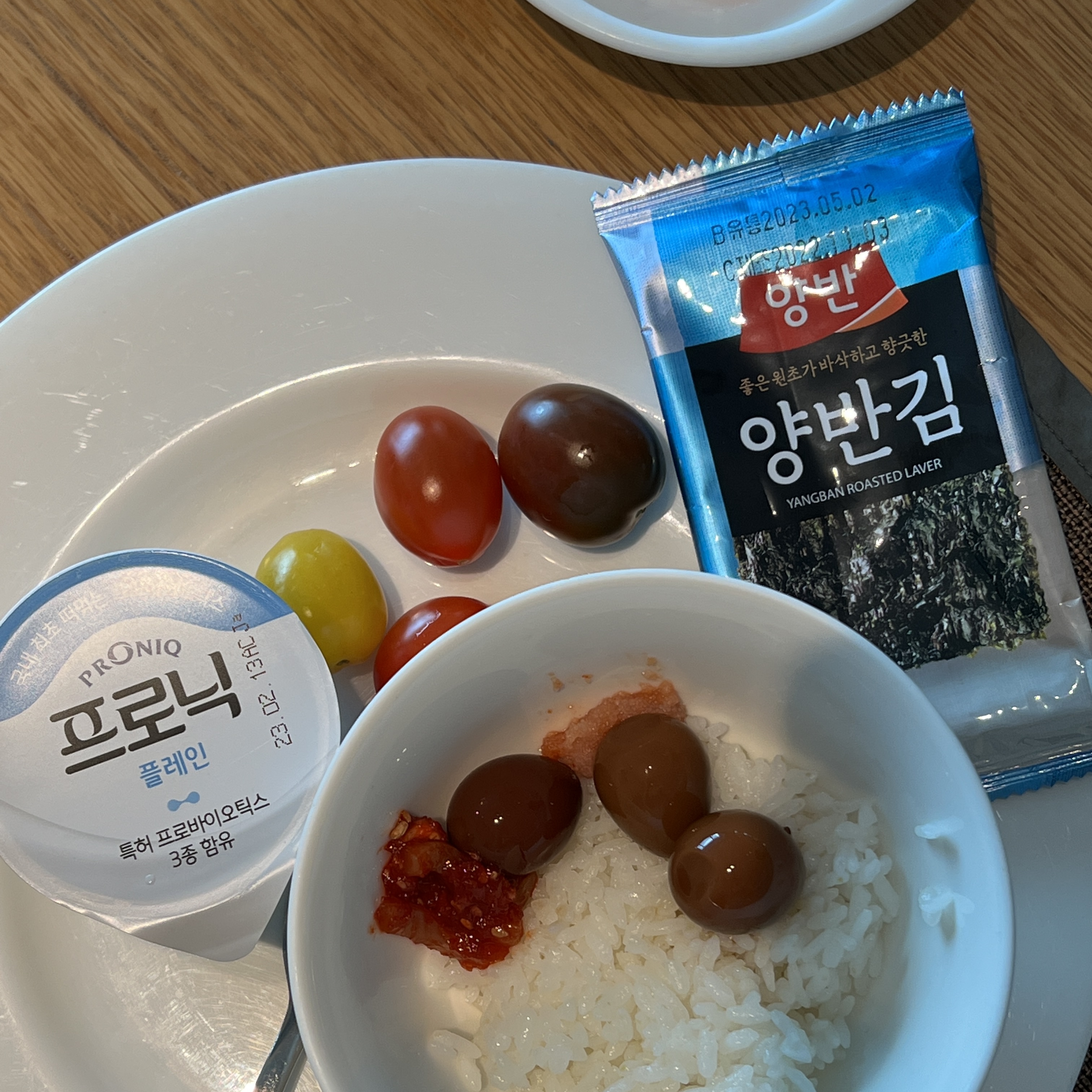 그리고 한식이 정말 맛있게 보여서 메추리알, 김, 명란젓과 함께 한그릇 뚝딱 했습니다.
