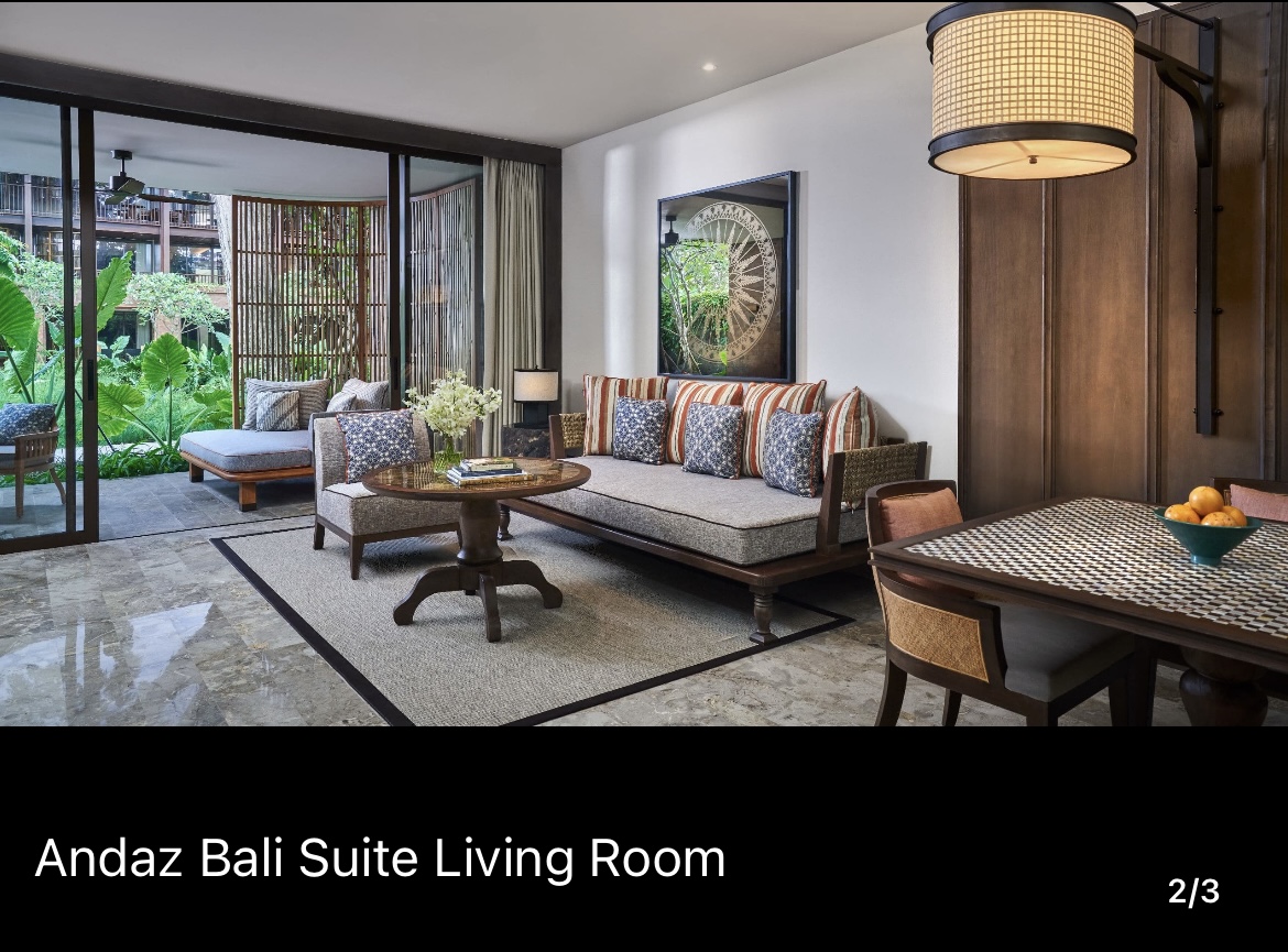 먼저 앨리밸리님 유투브에서 본 누사두아의 세인트레지스, 센레라고도 많이 하시는 메리어트 계열 럭셔리 리조트를 고려해 보았는데, 4인 가족은 무조건 스위트나 빌라 이상 묵어야 하더라고요. 그렇게 되면 1박당 300만 원이 훌쩍 넘습니다. 다음에 부모님이랑 가게 된다면 방 두 개로 해서, 가보고 싶은 마음입니다. 그리고 스사사 카페에서 기웃기웃 돌아다니다가 좋다고 하는 곳이 있었습니다. 바로 사누르 지역에 있는 안다즈! 안다즈는 하얏트 계열 약간 부띠끄 느낌의 호텔입니다. 압구정에도 있어서 한 번 묵으려다가 코로나19 창궐, 임신 초기 버프로 눈물을 머금고 취소했었어서 아쉬웠던 마음이 있는데요. 조각보에만 애프터눈 티를 즐기러 한 번 가보았는데 분위기가 아주 좋았습니다. 발리 안다즈도 마찬가지로 분위기가 정말 발리스럽고 좋다고 하더라고요. 새로 생긴 호텔이고, 하얏트 카테고리로는 4단계에 속하는데, 가격도 나쁘지 않아서 이미 마음속 1위로 자리 잡은 숙소가 되었습니다. 그리고 기본 객실부터 성인 2, 아기 2 이렇게 묵을 수 있다는 것이 장점입니다. 그냥 기본룸도 20평대라 무척 넓지만, 저희는 아기들 재우고 식사를 하거나 개인 자유 시간을 갖기 위해 침실과 거실이 분리된 방을 예약하기로 했습니다.